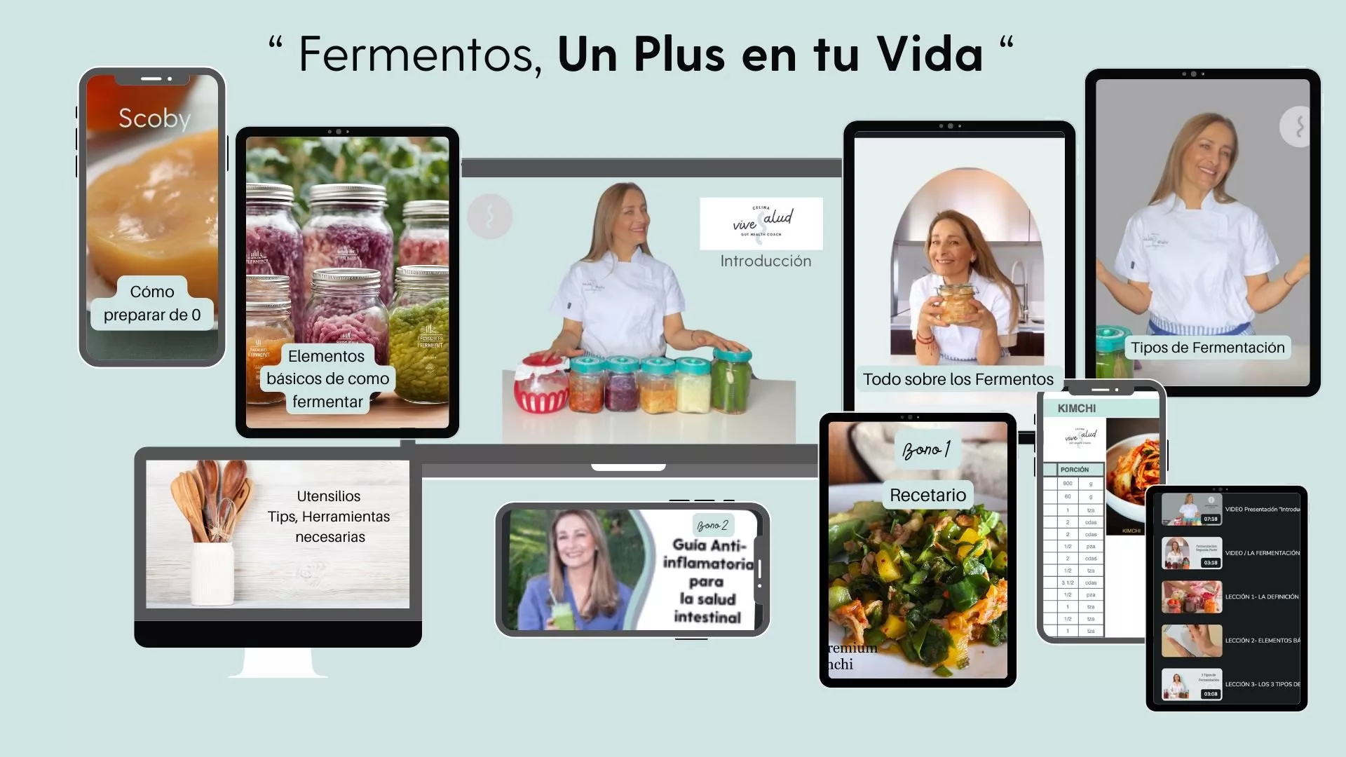 Lo ineresante de este taller es también es el Bono actual donde se incluyen varias las recetas adicionales para integrar los fermentos a tu vida diaria.